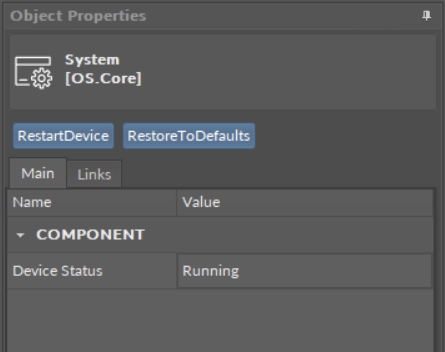 The System container is a configuration center of a device; it includes information about the operating system and settings. It provides a hardware characteristic of the device, informing about the OS version, CPU performance, IP address, port number, or number of inputs and outputs.