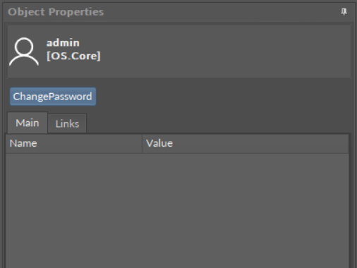 The Users component lists the users available in the device. In the first iteration, the list contains an admin user with full permissions, and there is no option to add other users. The Users component allows to change the user's password.