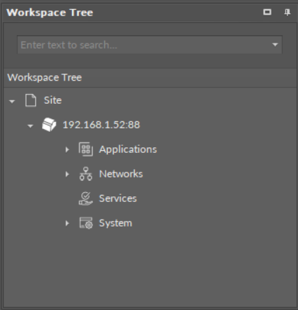 Once the new project and the device are added in the Workspace Tree window, the nano EDGE ENGINE offers a default arrangement of its elements, organized in a tree structure.