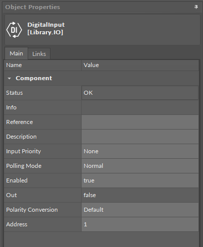 Address: allows setting an address of a physical input of the device; once the component has been added, the slot's default value is null—for the component to operate properly, the unique address value must be set in this slot.
