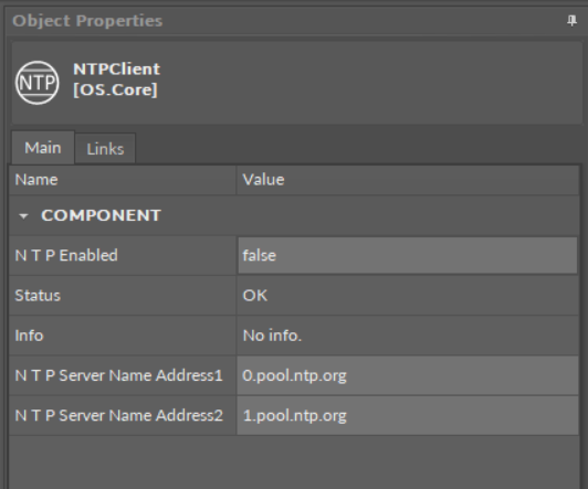 NTP Enabled: allows to enable or disable the component;