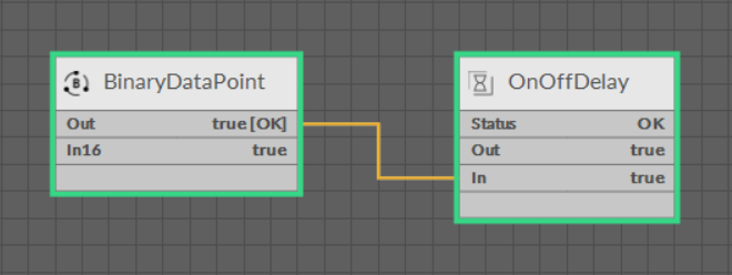 Off Delay Active: indicates whether the In slot value on the falling edge is being delayed from being passed to the Out slot—if the slot indicates true, it means that the In slot value has changed to the falling edge, but the Off Delay slot is activated, so the value will not be passed to the Out slot until the specified time passes;