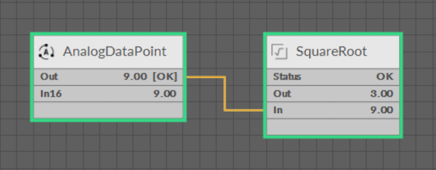 The SquareRoot component returns a square root value of the In slot value.