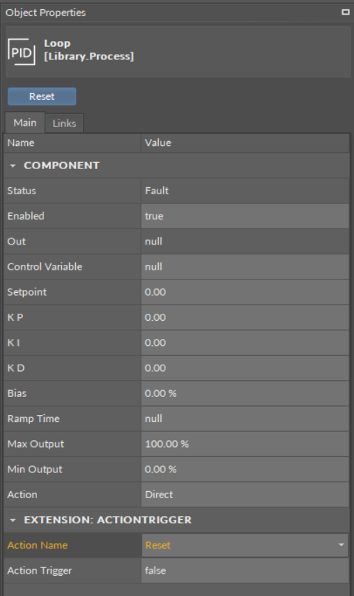 Enabled: enables execution of the PID loop–if disabled, the Out slot is set to 0; if enabled, the component calculates the Out slot according to its regulation algorithm;