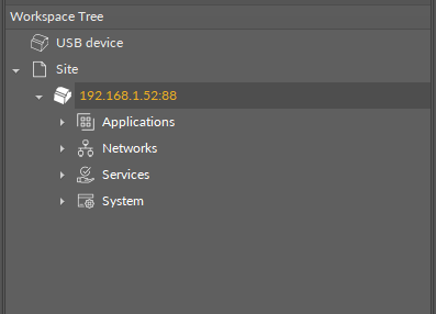 Once the new project and the device are added in the Workspace Tree window, the nano EDGE ENGINE offers a default arrangement of its elements, organized in a tree structure.