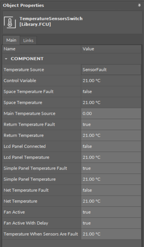 If the sensor selected in the Main Temperature Source slot has gone into any fault or false state , the temperature from the Temperature When Sensors Are Fault slot is set to the Control Variable slot.