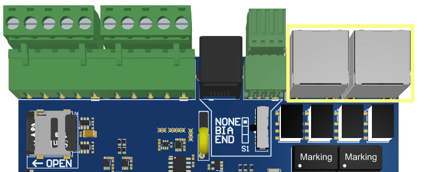 Due to the specifics of the Ethernet network daisy chain topology, which the RAC18-IP devices can be connected to, they are equipped with two Ethernet ports, working as switch, allowing to ensure the communication continuity in such network topology. In order to ensure safety in Ethernet communication transmissions, the Ethernet ports of the RAC18-IP controllers are fail-safe protected.