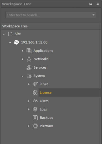 The License component provides data about the license status in the device. It shows if the device is licensed, how many Data Points are included in the license, how many of them have already been used, and how many are still available. All slots in the License component are read-only type.
