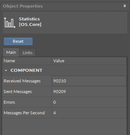 The Statistics component provides information about the number of messages regarding the iFnet protocol (servicing the communication with the device from the iC Tool), transferred during one uptime of the device.