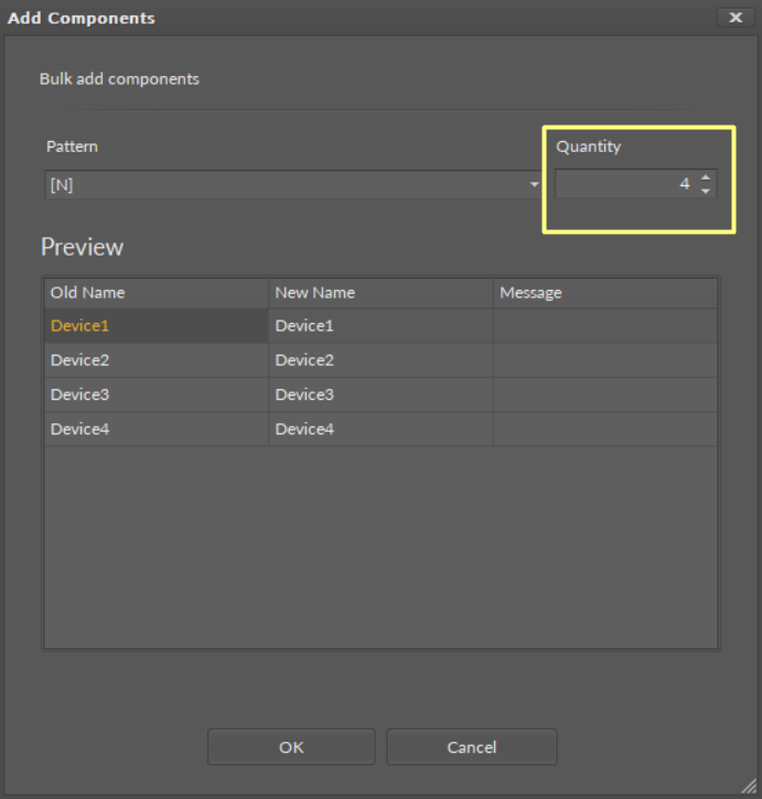 Using this Add button opens the dialog window, which allows to adjust the quantity of devices to be added.