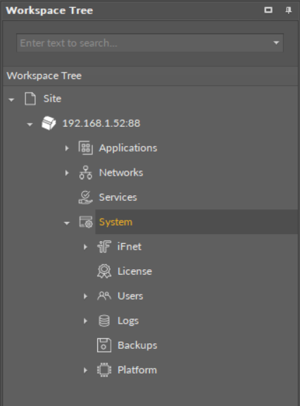 The System container is a starting point to work with the deviceāit is a place to configure the device and connect it to the network. One of the most useful features of the System container is a possibility to set a unique IP address of the device.