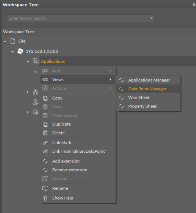 Opening the Data Point Manager