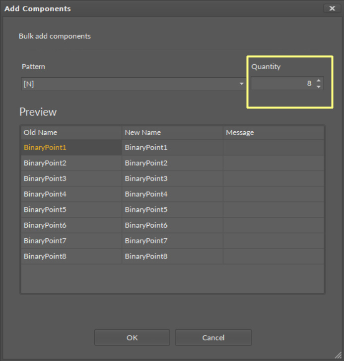 Using this Add button opens the dialog window, which allows to adjust the quantity of Modbus Points to be added.