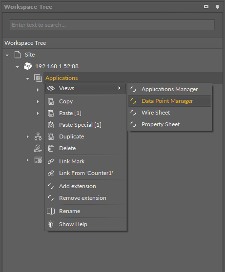 Opening the Data Point Manager