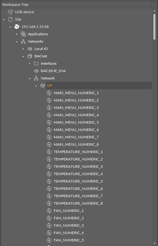 Discovered points can be easily added to the Device component. Select the points on the list and click the Add button.