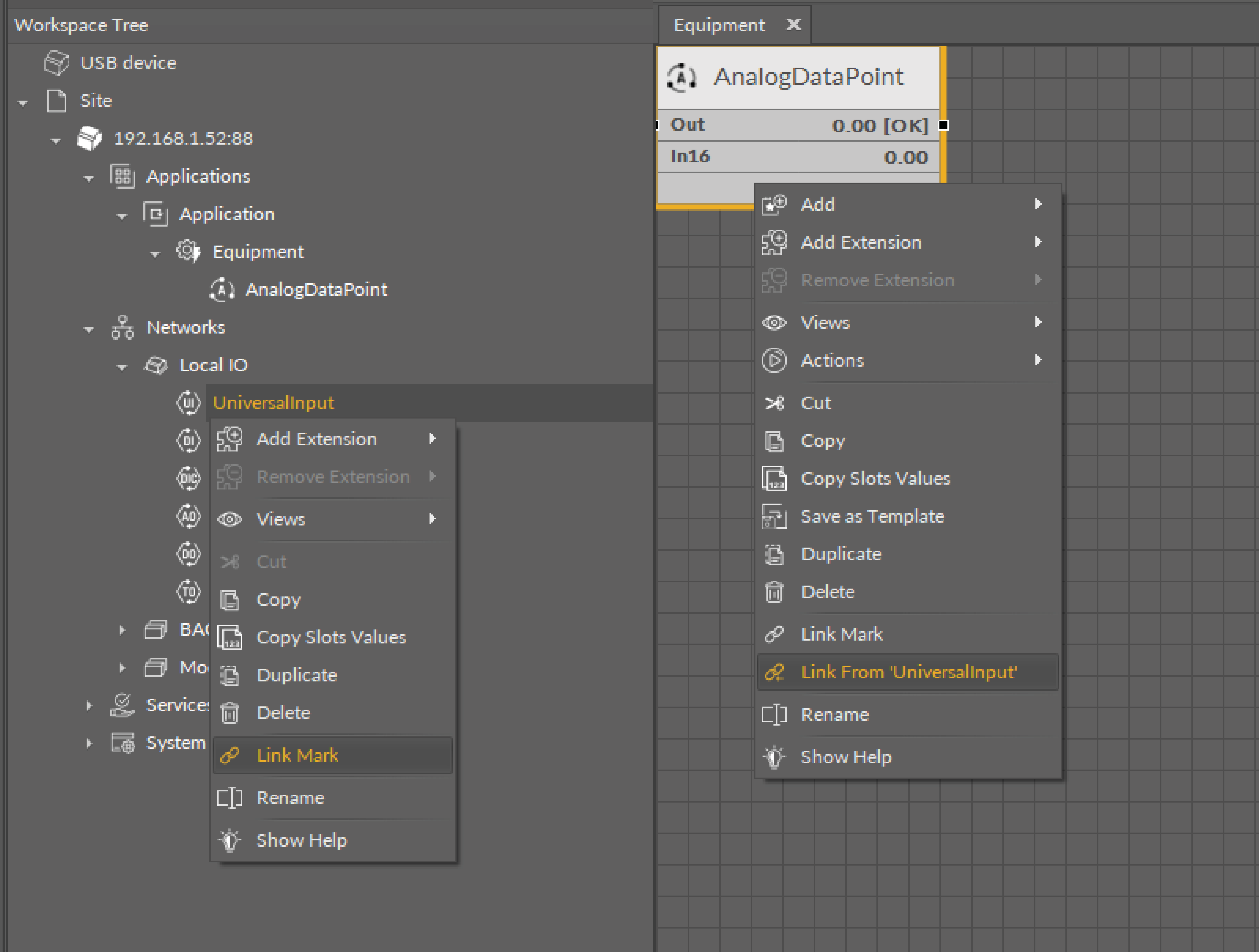 Analog Data Point linked from the Universal Input
