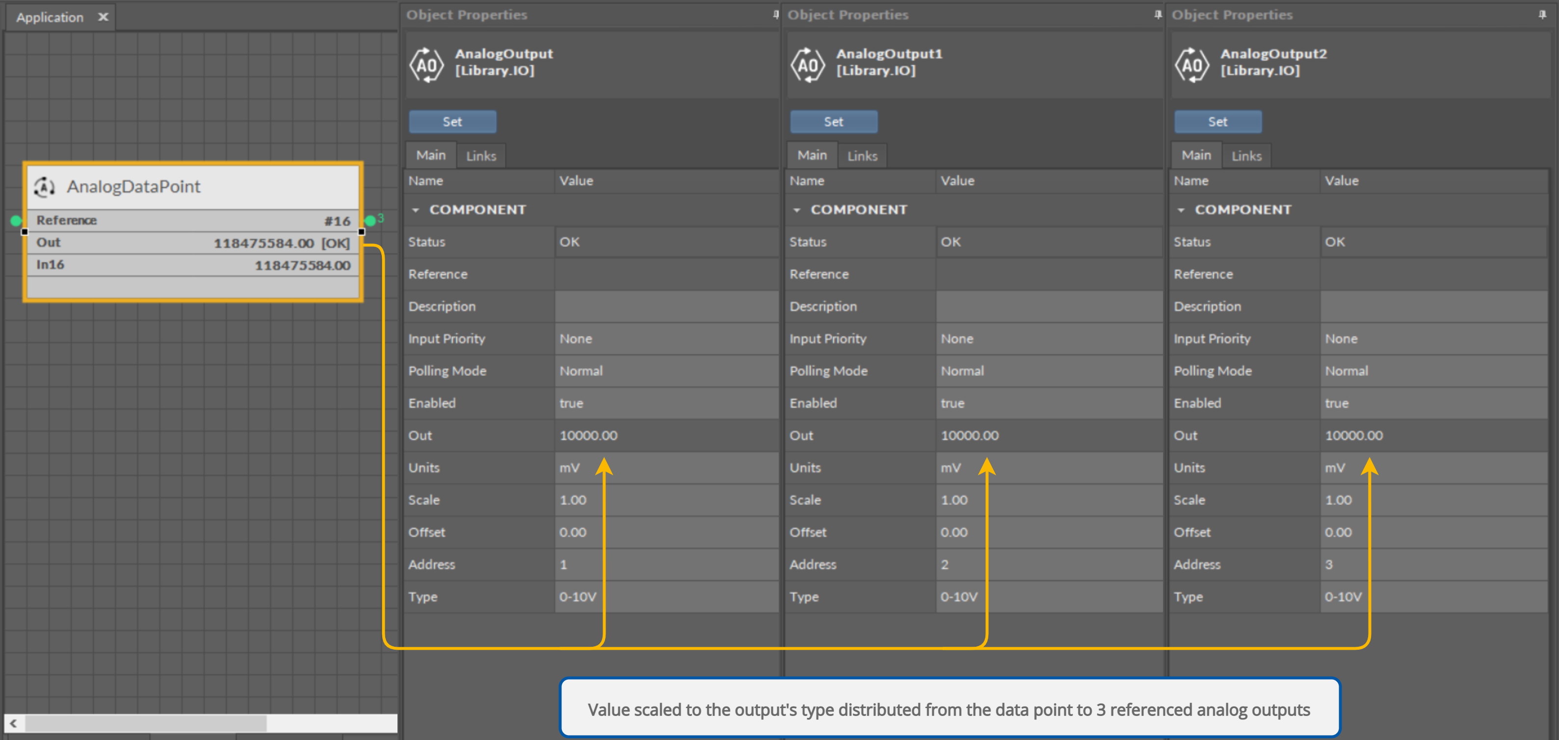 First of all, in such case, the Reference link behaves bidirectionally. It transfers the value from the Data Point to the network point, and in turn it informs whether the value has been correctly received by the network point by sending back the network point's status. This hugely advantageous feature allows to instantly identify that at least one of the linked network points has gone into the fault status.