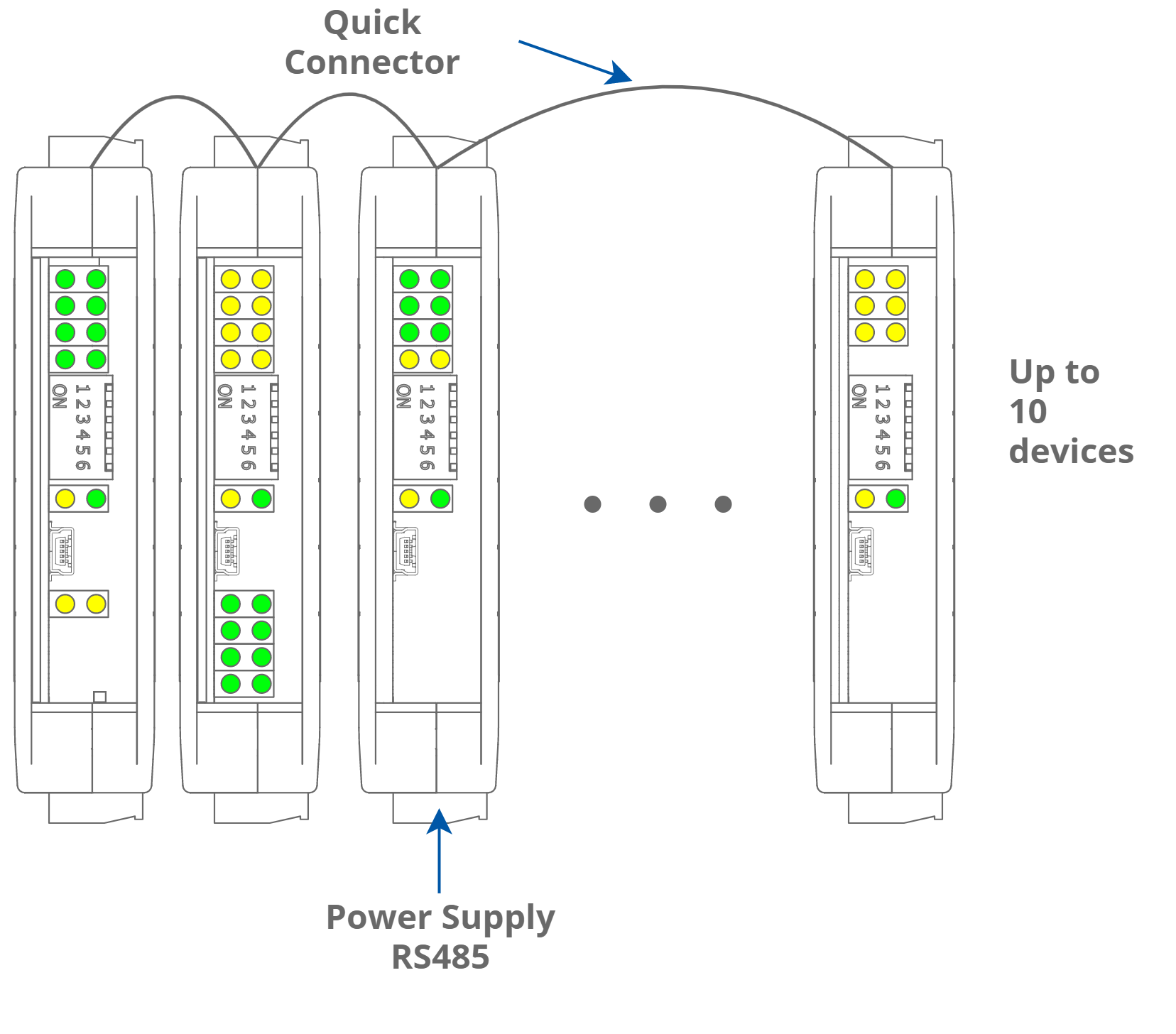 The Quick Connector is an unique feature of modules that allows for quickly connecting a group of devices with a flat ribbon cable.