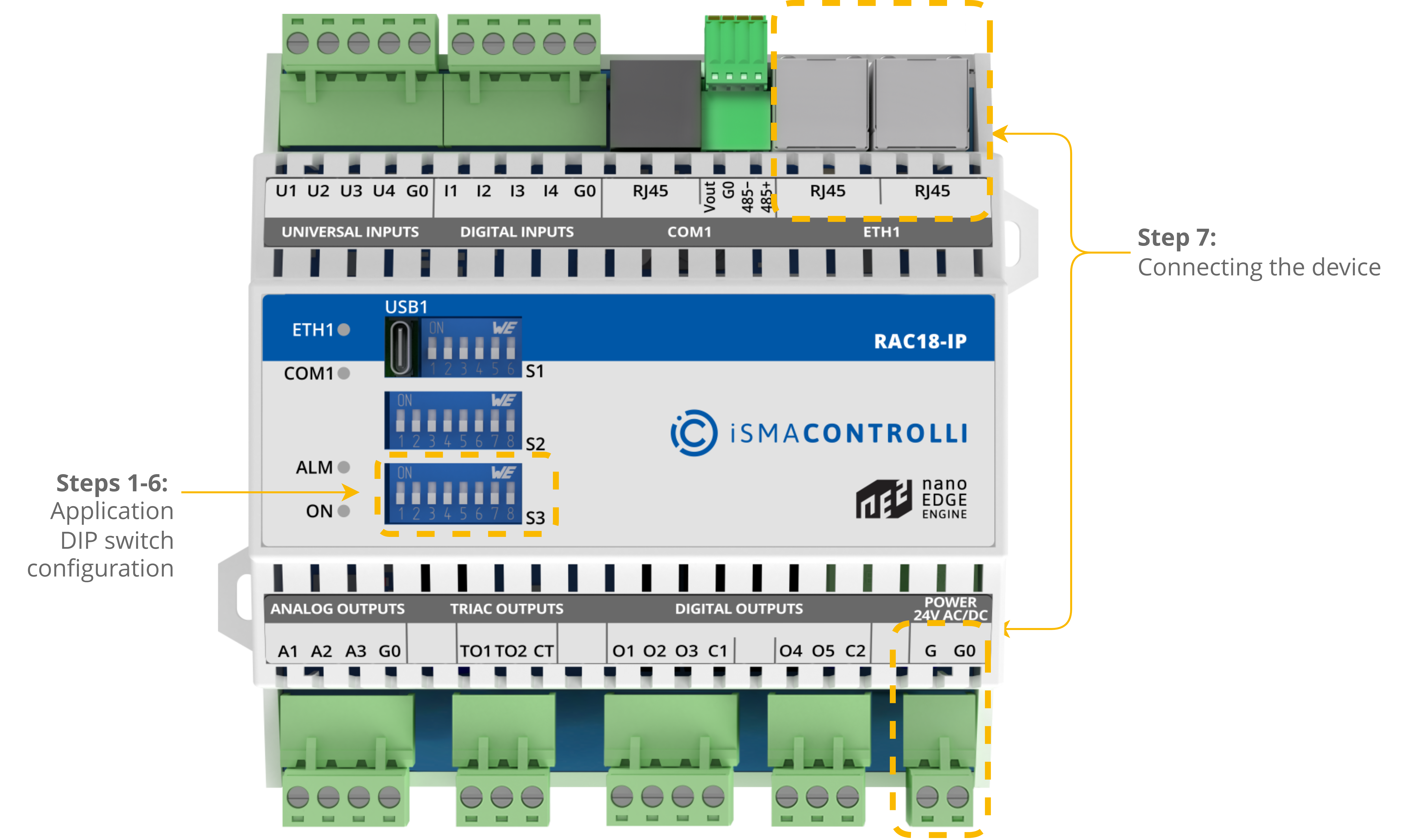 The configuration of the RAC18-IP controller with the universal FCU application is described step by step in the section of the manual: