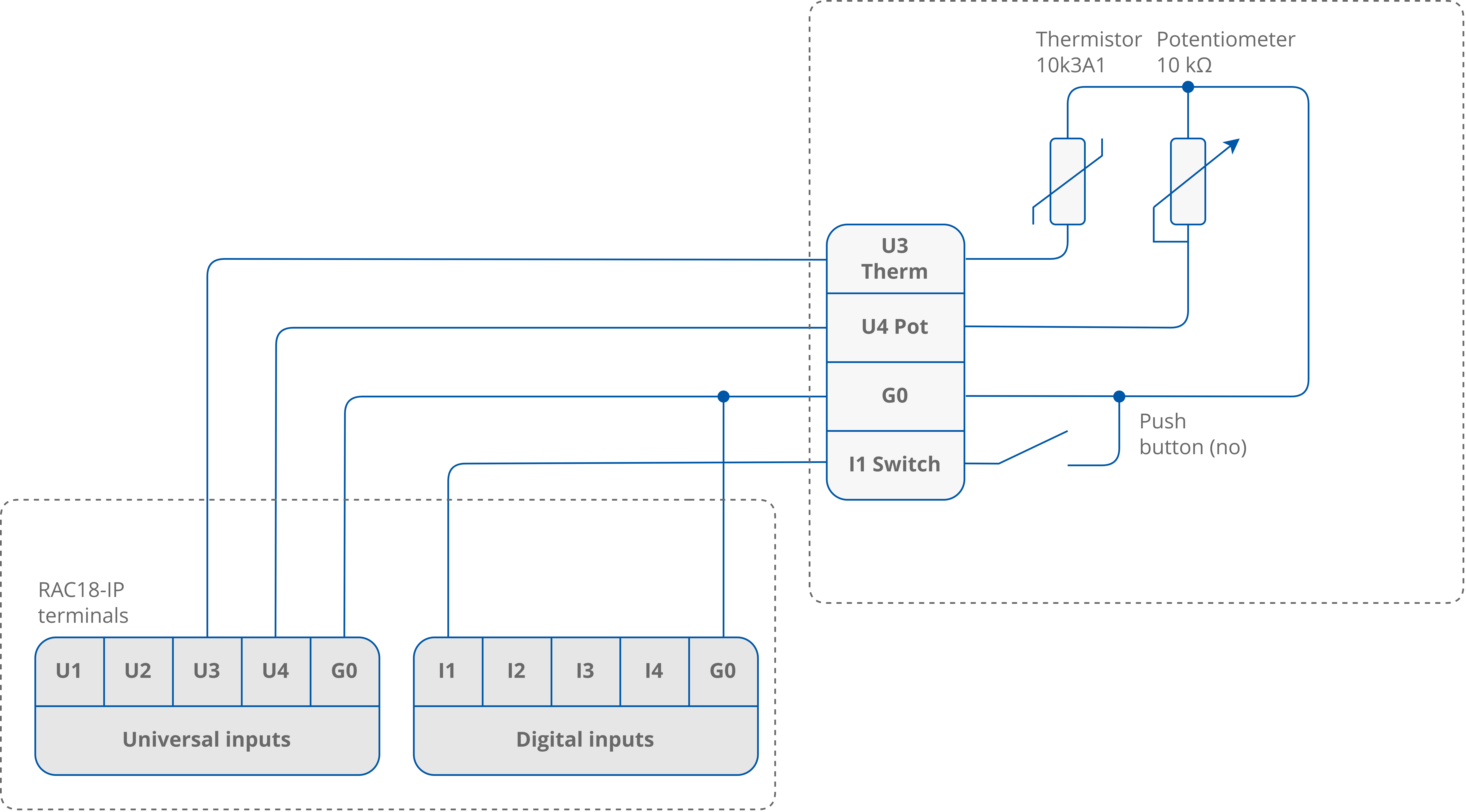 The iSMA-B-SP panel internal connection and the connection with the RAC18-IP controller are presented in the figures below.