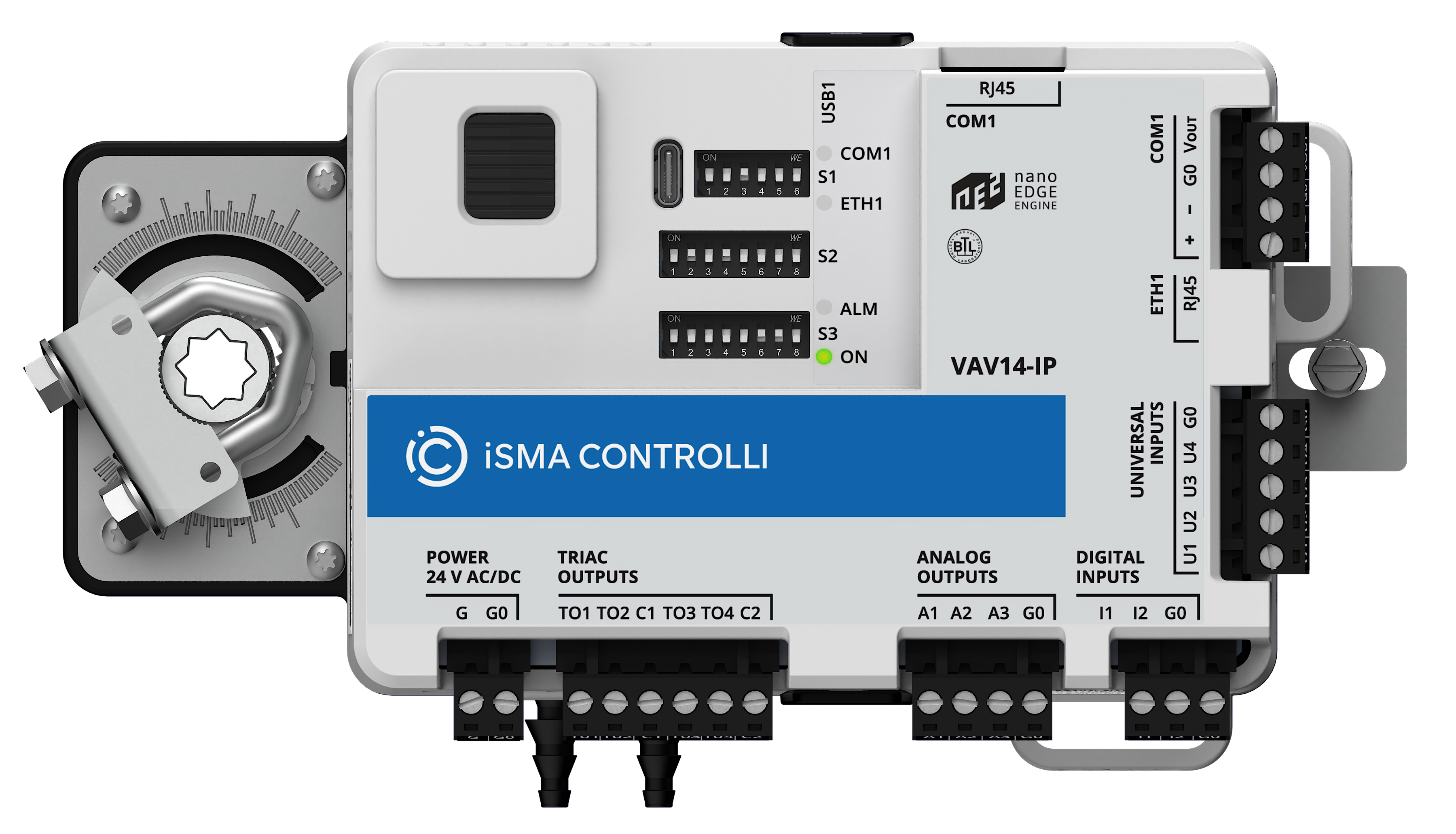 The VAV14-IP is a controller designed for energy-efficient airflow control in HVAC systems. It is equipped with a built-in configurable application and at the same time it can be freely programmable thanks to the versatility of its software platform, the nano EDGE ENGINE, which allows to adapt the controller’s operation to the most advanced systems and equipment.