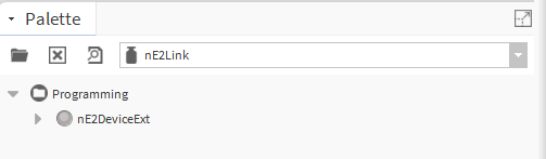 The nE2DeviceExt is a network device extension located in the Programming folder. The nE2DeviceExt functions as a device extension inside Niagara networks, the BACnetNetwork or ModbusTcpNetwork, it must be dropped under the proper network device.
