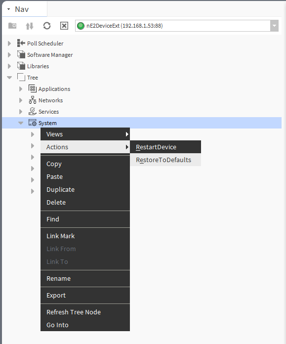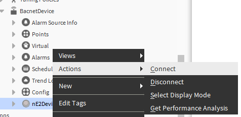 (a) Once the extension is added to the device, right-click on the nE2DeviceExt, go to Actions → Connect.