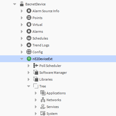 Once properly connected, expand the nE2DeviceExt. A new tree component is visible.