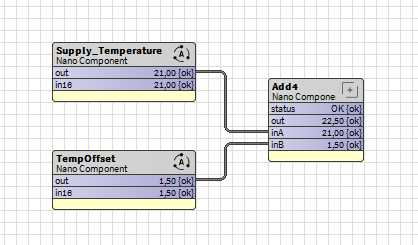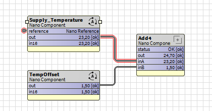 In nE2DeviceExt, it is possible to link nano EDGE ENGINE components by dragging a wire from one component to another.