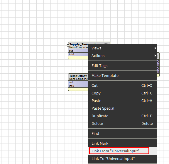 Once the link is marked, right-click on the desired Data Point and click the Link From option.