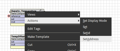 Modbus address is set automatically. In order to set Modbus address manually, right-click the Data Point and select the SetAddress action.