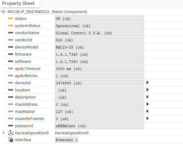 To integrate the nano EDGE ENGINE device and Data Points exposed over BACnet, make sure the LocalDevice component is properly configured. To change the BACnet Device settings, go to Networks → BACnet → LocalDevice, e.g., RAC18-IP.